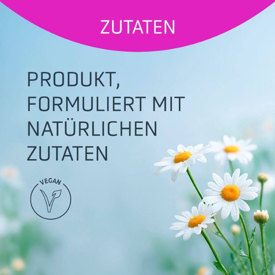 Kamille: besonders geeignet für die Behandlung empfindlicher oder gereizter Haut, reduziert Reizungen und Entzündungen, da sie antiseptisch und entspannend wirkt.