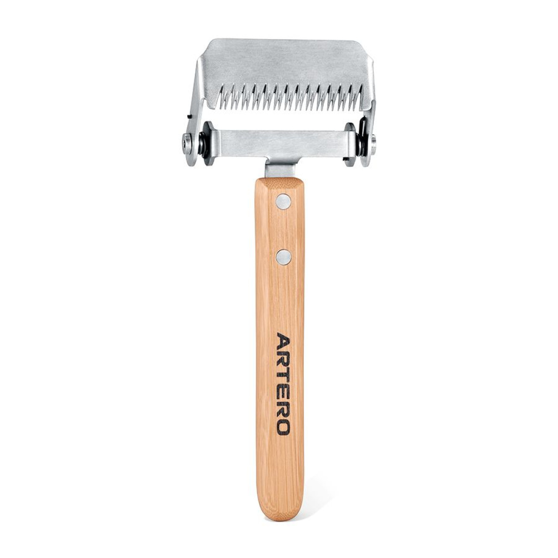 Deslanador articulado de 18x7,5 cm con 13 dientes dobles. Mango de bambú con acabado en goma antideslizante y cabezal articulado que mejora el rendimiento del deslanado. Ideal para perros de pelo duro y razas como Spaniels y Setters.