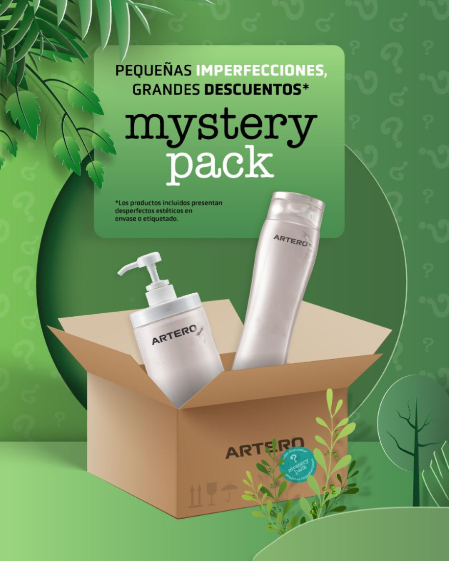 <p>En Artero creemos que un pequeño desperfecto en el envase no debería convertir un buen producto en un residuo.<br>Por eso nace Mystery Pack Artero: una forma responsable de dar una segunda oportunidad a productos de cosmética totalmente funcionales, reduciendo desperdicios y cuidando el planeta, mientras cuidamos también tu bolsillo.</p>