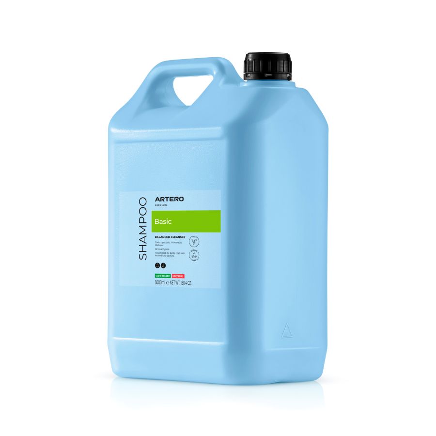 <p style="text-align: left;">Format 5 litres.</p></div></div><div class="pagebuilder-column" data-content-type="column" data-appearance="full-height" data-background-images="{}" data-element="main" data-pb-style="SC6O4OV"><figure data-content-type="image" data-appearance="full-width" data-element="main" data-pb-style="RB3BX9F"><img class="pagebuilder-mobile-hidden" src="{{media url=wysiwyg/HERO_BASIC_01_Imagen_Principal_FR.jpg}}" alt="" title="" mfdislazy="0" data-element="desktop_image" data-pb-style="WU8EFMS"><img class="pagebuilder-mobile-only" src="{{media url=wysiwyg/HERO_BASIC_01_Imagen_Principal_FR.jpg}}" alt="" title="" mfdislazy="0" data-element="mobile_image" data-pb-style="KX7LNM5"></figure></div></div></div><div data-content-type="divider" data-appearance="default" data-element="main"><hr data-element="line" data-pb-style="OKEIH51"></div><div class="pagebuilder-column-group" data-background-images="{}" data-content-type="column-group" data-appearance="default" data-grid-size="12" data-element="main" data-pb-style="MVSNF3F"><div class="pagebuilder-column-line" data-content-type="column-line" data-element="main" data-pb-style="GLLVYXV"><div class="pagebuilder-column" data-content-type="column" data-appearance="full-height" data-background-images="{\"desktop_image\":\"{{media url=wysiwyg/HERO_BASIC_02_Funciones_FR.jpg}}\"}" data-element="main" data-pb-style="QG3I0VG"></div><div class="pagebuilder-column" data-content-type="column" data-appearance="full-height" data-background-images="{}" data-element="main" data-pb-style="XE2CS38"><div data-content-type="text" data-appearance="default" data-element="main"><h2 id="F2HFEWC" style="text-align: center;"><strong>Mode d'emploi</strong></h2></div><div data-content-type="text" data-appearance="default" data-element="main"><p style="text-align: center;"><span style="color: #555555; font-family: Obvia, 'Open Sans', sans-serif;">Il est conseillé de démêler avant le bain pour favoriser une meilleure pénétration de l'eau et du shampooing. Si les poils sont très emmêlés, appliquez le spray démêlant <a tabindex="0" href="https://artero.com/fr/petcare/demelant-pour-chiens-et-chats-artero-matt-x">Artero Matt-x.</a></span><br style="box-sizing: border-box; color: #555555; font-family: Obvia, 'Open Sans', sans-serif; outline: none !important;"><span style="color: #555555; font-family: Obvia, 'Open Sans', sans-serif;">Bien mouiller la zone à laver.</span><br style="box-sizing: border-box; color: #555555; font-family: Obvia, 'Open Sans', sans-serif; outline: none !important;"><span style="color: #555555; font-family: Obvia, 'Open Sans', sans-serif;">Appliquer le shampooing en massant jusqu'à créer de la mousse.</span><br style="box-sizing: border-box; color: #555555; font-family: Obvia, 'Open Sans', sans-serif; outline: none !important;"><span style="color: #555555; font-family: Obvia, 'Open Sans', sans-serif;">Rincer.</span></p></div><div data-content-type="text" data-appearance="default" data-element="main"><h2 id="F2HFEWC" style="text-align: center;"><strong>Vous voulez de meilleurs résultats ? </strong></h2></div><div data-content-type="text" data-appearance="default" data-element="main"><p style="text-align: center;"><span style="color: #555555; font-family: Obvia, 'Open Sans', sans-serif; text-align: left;">Recommandé : faire un deuxième savonnage avec <a tabindex="0" href="https://artero.com/fr/petcare/artero-champu-intensificateur-1l">un shampooing de traitement,</a> ou ceux mentionnés ci-dessus. Laisser agir environ 3 minutes.</span><br style="box-sizing: border-box; color: #555555; font-family: Obvia, 'Open Sans', sans-serif; text-align: left; outline: none !important;"><span style="color: #555555; font-family: Obvia, 'Open Sans', sans-serif; text-align: left;">Rincer abondamment à l'eau.</span></p></div></div><div class="pagebuilder-column" data-content-type="column" data-appearance="full-height" data-background-images="{\"desktop_image\":\"{{media url=wysiwyg/HERO_BASIC_03_Pasos_FR.jpg}}\"}" data-element="main" data-pb-style="SRHD6M6"></div></div></div><div data-content-type="divider" data-appearance="default" data-element="main"><hr data-element="line" data-pb-style="GX0B271"></div></div></div><div data-content-type="row" data-appearance="contained" data-element="main"><div data-enable-parallax="0" data-parallax-speed="0.5" data-background-images="{}" data-background-type="image" data-video-loop="true" data-video-play-only-visible="true" data-video-lazy-load="true" data-video-fallback-src="" data-element="inner" data-pb-style="MW97PA9"><div class="pagebuilder-column-group" data-background-images="{}" data-content-type="column-group" data-appearance="default" data-grid-size="12" data-element="main" data-pb-style="KMOTR52"><div class="pagebuilder-column-line" data-content-type="column-line" data-element="main" data-pb-style="V8R00AG"><div class="pagebuilder-column" data-content-type="column" data-appearance="full-height" data-background-images="{}" data-element="main" data-pb-style="TSHQ8XI"></div><div class="pagebuilder-column" data-content-type="column" data-appearance="align-center" data-background-images="{}" data-element="main" data-pb-style="PA4C1IO"><figure data-content-type="image" data-appearance="full-width" data-element="main" data-pb-style="YNK0F68"><img class="pagebuilder-mobile-hidden" src="{{media url=wysiwyg/anna_5.jpg}}" alt="" title="" data-element="desktop_image" data-pb-style="ISC4WED"><img class="pagebuilder-mobile-only" src="{{media url=wysiwyg/anna_5.jpg}}" alt="" title="" data-element="mobile_image" data-pb-style="B1X3EQU"></figure></div><div class="pagebuilder-column" data-content-type="column" data-appearance="full-height" data-background-images="{}" data-element="main" data-pb-style="H2C1QWO"><div data-content-type="text" data-appearance="default" data-element="main" data-pb-style="KFM2MN9"><h2 id="F2HFEWC" style="text-align: center;"><strong>Recommandations de nos spécialistes</strong></h2></