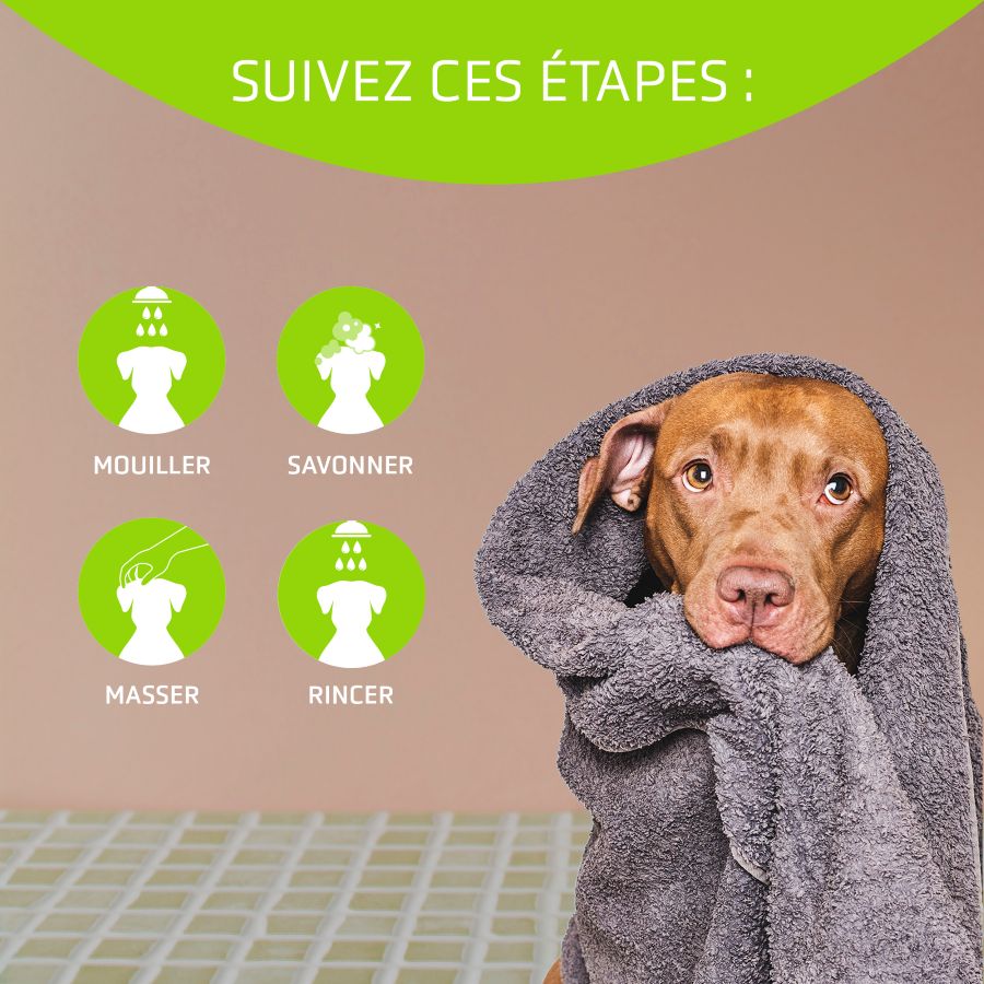 Parfaitement équilibré pour respecter le derme et les poils de l'animal.