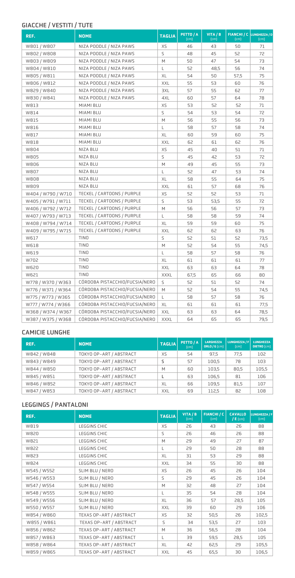 • Taglie: XS, S, M, L, XL, XXL