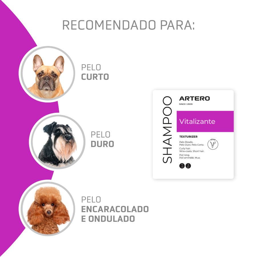 Além disso, o Champô Artero Vitalizante inclui um complexo vitamínico que nutre profundamente o pelo, proporcionando um brilho e hidratação extremos.